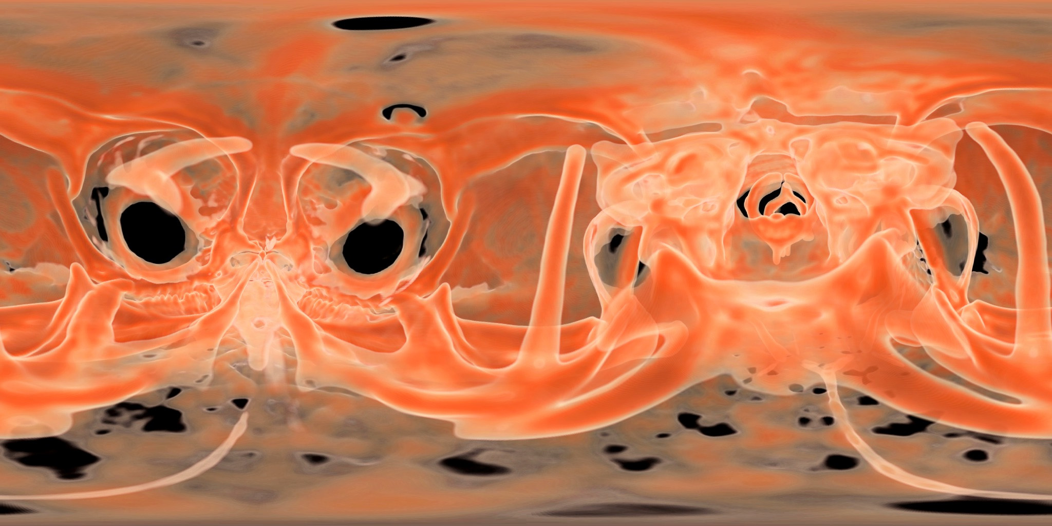 Samples from the iDome visualisation show reel. Note the images below look distorted because they are spherical (equirectangular) projections, in the iDome they will not appear distorted and the user can freely navigate (panning horizontally and vertically) within the movies.