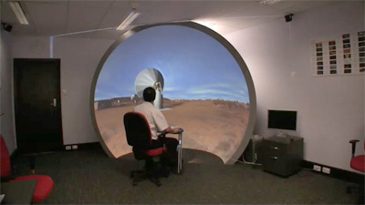 The exact mapping of the warped version is for a particular iDome configuration, but different warpings including various truncated fisheye configurations is no more than an appropriate warp map file. Example 2Environment based upon a Unity project that allows people to explore the ASKAP (Australian Square Kilometer Array Pathfinder) project site. Movie
