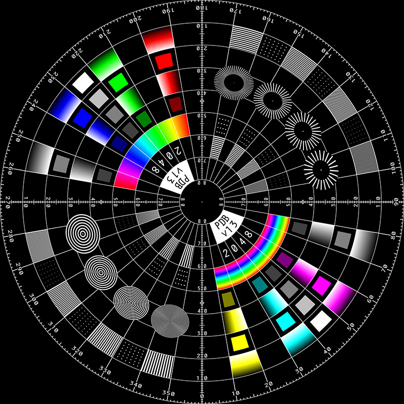 In order to create the warping specification one needs to know where any point in the fisheye image to be projected appears on the dome surface. One way to do this is to project a test image consisting of markers at known positions, in this case coloured dots. ![]()