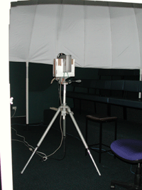Note that for these tests an Elumens projector was used. This is a standard projector with their fisheye lens and as such the projector projects a 4:3 width to height ratio while fisheye images are 1:1. This is addressed by clipping off 25% of the image, in the case of the Elumens dome this is normally the bottom 25%. In our case we chose to clip the top 25%, this conveniently gave the viewers a position behind the projector from which to view the images without being blinded.