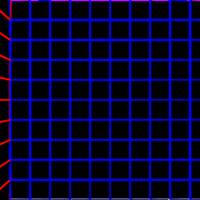Some raytracing packages don't support a native fisheye camera, the question is often asked "can a spherical mirror be used to create a fisheye view?". The basic idea is to render the view of the scene by pointing the virtual camera at a perfectly reflective spherical surface. The answer is "the result is close but not exactly correct". Three rendering are shown below, the scene is simply a hemisphere represented as a regular grid of lines of latitude and longitude.