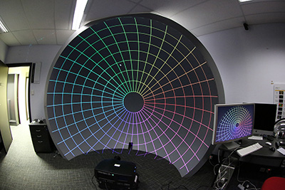 In what follows, the means by which one calculates the image warping required to project into a dome with a projector and fisheye lens where they are not located on the axis of the dome. The approach taken is in line with existing methods of hemispherical projection using a spherical mirror, that is, the frames of a fisheye movie are warped by being applied to a regular mesh consisting of vertices and texture coordinates. How to define the vertex coordinates and texture coordinates will be outlined here.