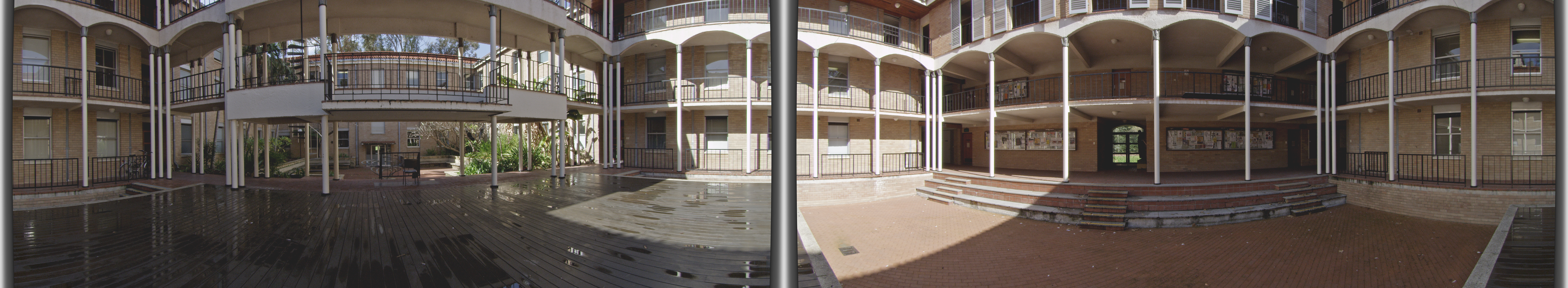 Example forming cylindrical projections from a pair (180 degrees rotated) of fisheye images using the 8-15mm Canon fisheye lens and the Red Scarlet in 4K mode, 30fps. Rendered at 8K and mask applied to hide the seam. Vertical FOV: 40 degrees.