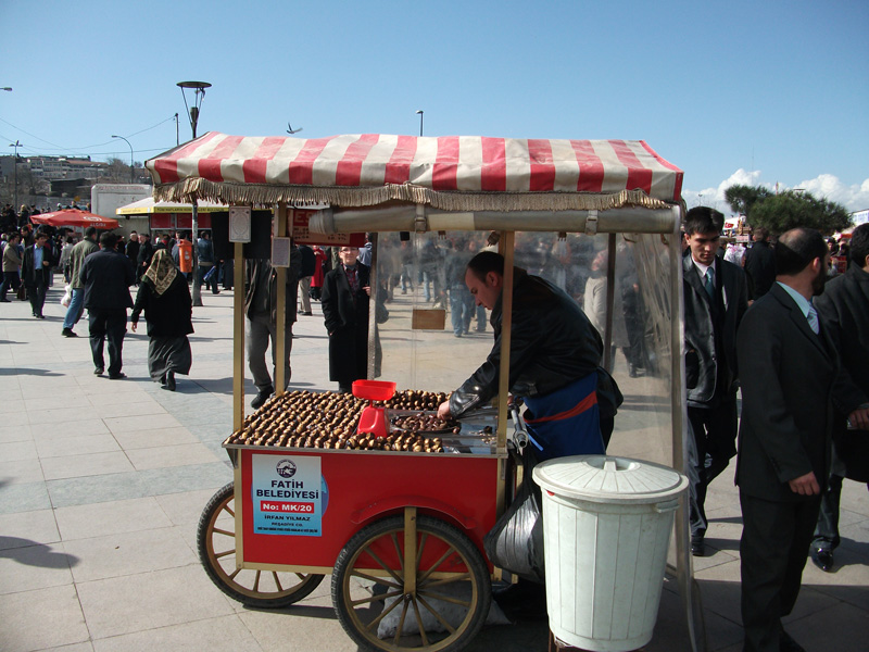 ![]() Huge span bridge across the Bosphorus. Street vendors