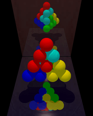 Consider 20 balls arranged as a triangular based pyramid, that is, 10 balls on the base, 6 balls on layer 2, 3 balls on layer 3, and finally one ball at the apex. The aim was to join various balls together so as to make an interesting puzzle. A 3D modelling and rendering package was used to determine how to join the balls together before building the model out of golf balls.