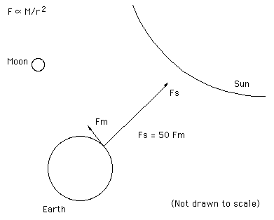 TidesIf asked what causes the tides most people would answer immediately, "the moon". They would be correct, however the general mechanism is generally not understood. Further you might know that it is the gravitational attraction of the moon which causes the ocean to be attracted towards the moon thus causing a tide, again you would be correct...however... There are two facts which you might ask yourself to test your understanding of how tides work. First, the gravitational attraction on a mass on the surface of the earth due to the sun is about 50 times stronger than that of the moon. (The force is proportional to the mass of the sun and inversely proportional to the square of the distance) Why then should the moon cause the tides, it has a relatively small contribution to the gravitational force on a parcel of water? ![]() Second, why do we get two (almost) tides per day? Given that the moon travels around the earth in about 28 days then its motion across our sky is mostly due to the earths rotation which of course spins around once per day. Thus wouldn't we expect only one tide per day. ie: if the oceans bulge towards the moon then the bulge moves around the earth once per day. ![]() A correct understanding of the tides explains both the above.