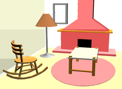 Rendering on the MacintoshFeaturing StrataVisionAustralasian Wheels for the Mind, April 1991Written by Paul BourkeProvided as an historical document on state of the art of Macintosh rendering at the time. Introduction This article will discuss the techniques available for creating realistic computer generated images of three dimensional scenes. While the discussion is general examples will be taken from a Macintosh package called StrataVision from Strata Inc. StrataVision provides considerable power usually associated only with the high-end workstation products but most importantly it adds an exceptional user interface. Hardware requirementsIt would be misleading to suggest that quality rendering is possible on the whole range of Macintosh platforms. The resources needed such as processing power and colour requirements mean that only the machines at middle to upper end of the Apple product line are suitable. OverviewThe aim in rendering is to create a realistic digital image of a scene by computer. Ultimately it is hoped to create an image where an observer cannot tell if it is computer generated or a photograph of something real, this is the aim of photorealism. There are a number of stages that can be identified in the process that leads to the final rendered image, each of these stages are described below. Model generationA description of the geometry of the objects in the scene is the first requirement. This is the task of 3 dimensional modelling applications also known as CAD packages. Since modelling and rendering are both very difficult tasks in their own right it is unusual to encounter both within one package. Also, while rendering can be made discipline independent, modelling is usually very discipline dependent. The modelling requirements for desktop presentation, engineering, and architecture are all very different. It is therefore desirable for a rendering package to be able to read a number of 3D file formats so that it can import the geometry data from as wide a range of modellers as possible. StrataVision provides for the importing of DXF files as well as Super3D text files. The examples shown in this article will use the scene in figure 1 which was created using a general purpose CAD package called MicroStation. ![]() Figure 1. Wire frame model Surface attributes Surface attributes specify how the surfaces that make up the objects in the scene react to light. They include such things as the colour, reflection coefficients, transparency, and texture. These are the most important contributions to the quality of the rendered image since the geometry of most objects is simple and the visual information comes from how the surfaces react to incident light. It has been suggested that the most geometrically complex object in a home is the telephone, the most visually appealing objects such as a wood grain tabletop are often nothing more than rectangular boxes. Some of the surface characteristics one would expect to be able to control are: the red, green, blue components of the colour; the reflection coefficients for ambient, diffuse and specular contributions; the transparency and the refractive index; the glossiness. Each of these parameters is usually normalized to vary between 0 and 1. While the above can be specified numerically for an entire surface it is often necessary to vary the parameter over the surface, this is called texture mapping. Colour is the simplest case of an attribute that usually changes across a surface, for example, a wood tabletop with a grain. With texture mapping a bitmap of the colour variation is pasted onto the surface. The texture can be scaled, positioned, and repeated with various types of tiling systems. For textures indicating reflection coefficients only grey scale images are used, the white areas being high reflection coefficients while the black areas represent a low reflection coefficients. An example of a texture map for specifying the colour variation across a surface is shown in figure 2. This is a grey scale scanned image subsequently coloured in with a colour painting application. Another common application of textures is called a bump maps which specifies the roughness of the surface. The classic example usually cited is for rendering oranges where the appearance of pinches in the skin can be simulated with a bump map. The efficient use of texture maps can greatly simplify the modelling process. If traditional modelling and hidden line rendering were being used to model a tile floor it would be usual to draw each tile as a separate rectangle which can then be coloured individually. The result is a model with a large number of objects which slows down future processing. If texture maps are possible then the floor is modelled as one rectangular plane and the tile effect is created with a bitmap picture representing the minimum tiling pattern. The example scene contains a number of texture maps. Two are shown in figure 2, the brick also has an associated bump map. Other textures include oak plank on the floor, the image in the picture frame, the wallpaper, the pattern on the rug, and the cloth for the lamp shade. ![]() Figure 2. Texture map examples Light conditions This involves settings the position and attributes of the sources of light that affect the scene. Besides the ambient or background light level, there are generally four types of light source provided from which more complex sources can be made. They are: suns, point sources, directional sources, and luminous surfaces. Suns are considered to be an infinite distance away (wavefronts are parallel). Point light sources can be placed in the scene and radiate in all directions although they may have different distributions, circular and cylindrical say. Directional sources provide for such things as torches or spot lights. The angle or aperture of the cone is variable giving narrow or wide angle beams. Luminous surfaces cover such things as fluorescent surfaces, sometime referred