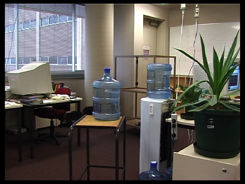 Note the chrominance is averaged over each 4x4 block. There is nothing particularly special about a 4x4 block instead of a 3x3 or 5x5 or other sizes. A 2x2 by two results in a factor 2 saving, a 3x3 grid results in a saving of 2.45. Larger grids give ever decreasing rates of return and soon impact on the image quality. The YCC colour space used follows that used by TIFF and JPEG (Rec 601-1)Y = 0.2989 R + 0.5866 G + 0.1145 B Cb = -0.1687 R - 0.3312 G + 0.5000 B Cr = 0.5000 R - 0.4183 G - 0.0816 B RGB values are normally on the scale of 0 to 1, or since they are stored as unsigned single bytes, 0 to 255. The resulting luminance value is also on the scale of 0 to 255, the chrominance values need 127.5 added to them so they can saved in an unsigned byte. Of course when the YCC values are turned back into RGB, then 127.5 must be first subtracted from the two chrominance values. The reverse transform is R = Y + 1.4022 Cr G = Y - 0.3456 Cb - 0.7145 Cr B = Y + 1.7710 Cb The full chrominance range of +-0.5 maps into a larger colour space than supported by RGB. The above equations can yield RGB values outside the 0 to 255 (or 0 to 1) range, these typically relate to very light or dark colours. The RGB values should be clipped so they lie within the allowed range after the transform from YCC to RGB is calculated. An image compressed this way is obviously degraded but could one tell the difference? Below are two images, the one on the left uses 24 bits per pixel and the one on the right uses 9 bits per pixel as described above.