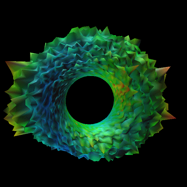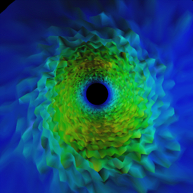 The software for animating the data from the simulation was written by myself as a module for Geomview and run on an SGI Max Impact.