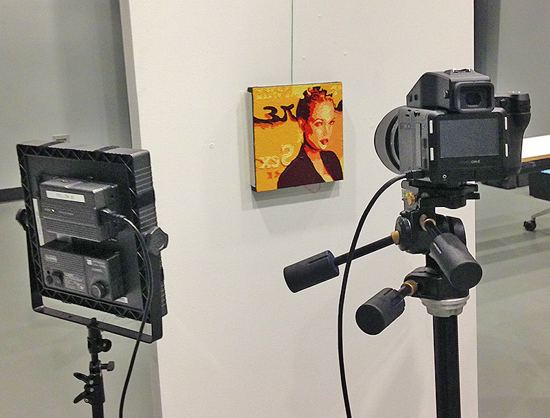 Example 2 The second example is a smaller piece, 300mm on each side, but it consisted of some degree of roughness in the form of up to 5mm raised oil paint strokes. The aim in this example was to scan at 2400DPI (approximately 100 dots per mm), 15 photographs in a 3x5 grid were acquired. ![]() Phase One and two area lights (turned off here)