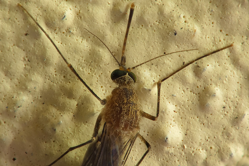 In addition to the reversed lenses used above, one can increase the magnification and bring the focus distance closer in by adding extension tubes to an existing lens, normally a macro lens. The following is a Canon 100mm macro with another 100mm of extension tubes, this increases the magnification one would normally get with the lens by a factor of 2. Dainty Long Legs ![]()