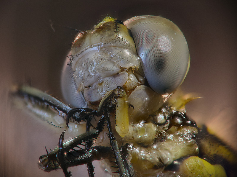 Of course depth of field is very narrow, following example uses manual focus stacking. That is, manually adjusting focus on the lens across a number of steps. Garden grub, ~1cm across sensor, 11 photographs ![]()