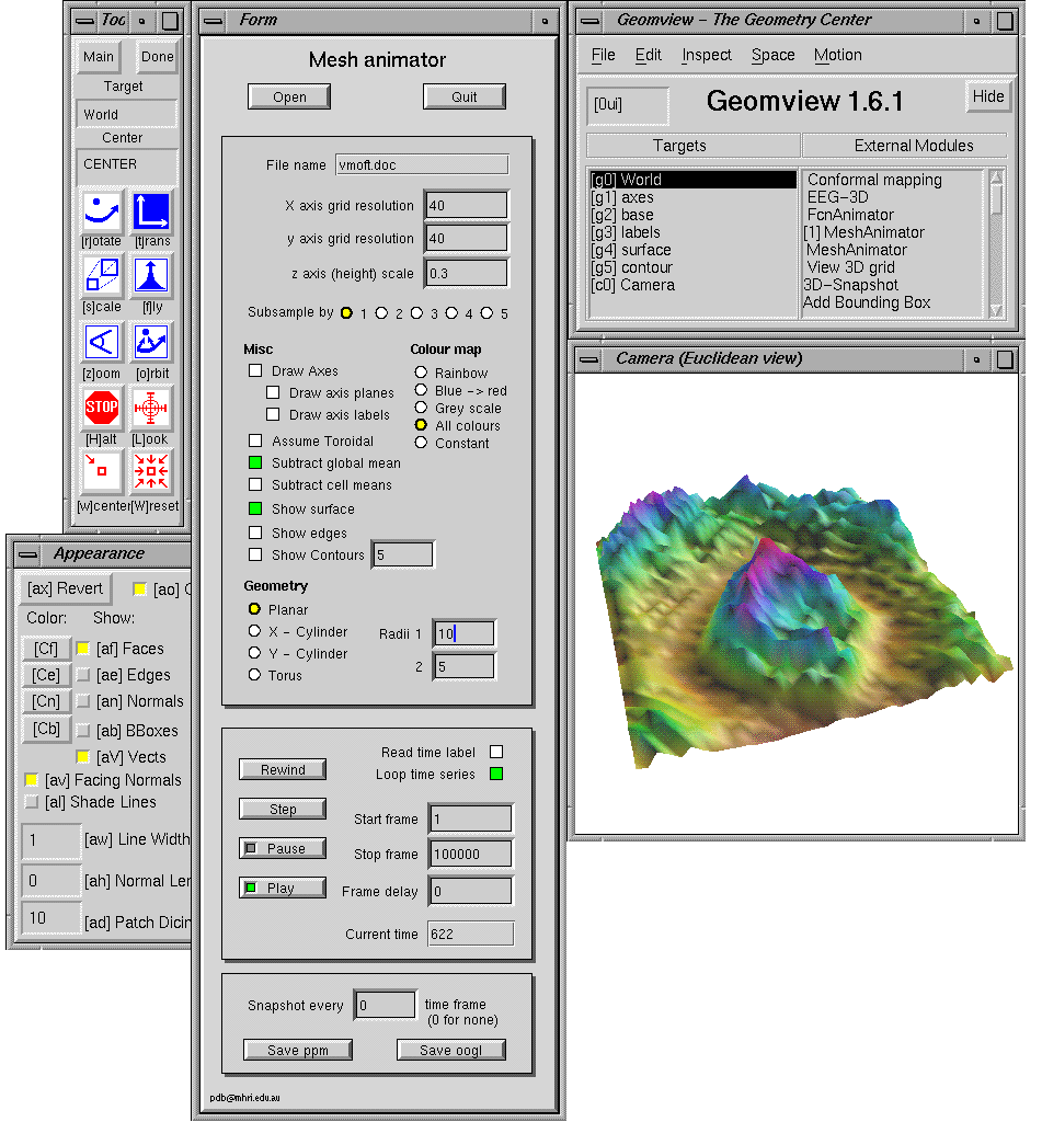 Mesh Animator is a plug-in for Geomview that displays time varying
