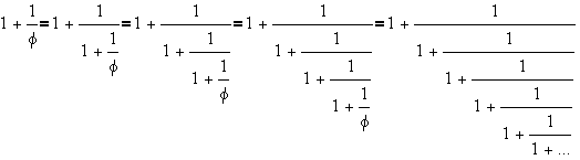 phi = phi = sqrt(1 + sqrt(1 + sqrt(1 + sqrt(1 + .....)))) Relationship to the Fibonacci series