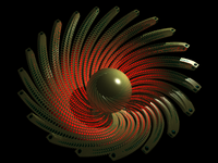 Congratulations to the winners of the 5th short code competition. It was a very close competition, the top 5 entries received almost 80% of the votes. The entries are given below, click on the image to view the movie. The movies are provided as QuickTime with the H264 codec. It is difficult to provide a movie format that will supported by all hardware and OS combinations, but a free QuickTime movie player is available for Mac OS and MSWindows. The movies supplied should also be supported by current versions of VLC and MPLAYER. All the movies shown here were created using the free cross-platform raytracer called POVRay. The scene file, also given with each entry, contains no more than 512 characters! More information on this competition can be found here including the results from earlier rounds [3] and [4]. And finally for addition amusement, some information on the Slashdot effect.