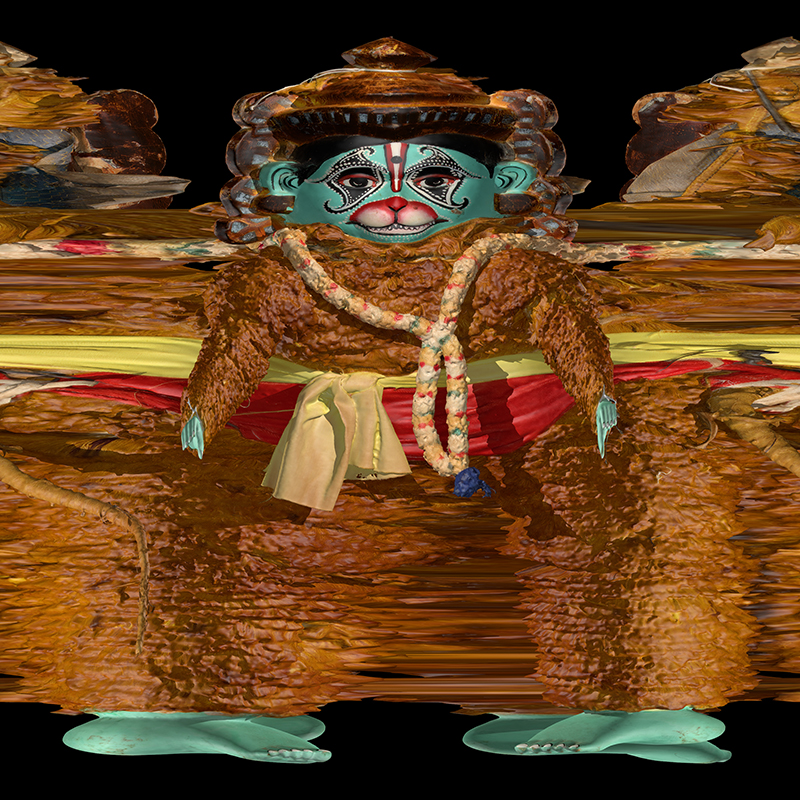 In the examples shown here, a 3D textured model is used to demonstrate the result. However real objects can be used by placing them on a motorised turntable and filming with a video camera followed by the slit scan approach described above for each frame of the video. ![]()