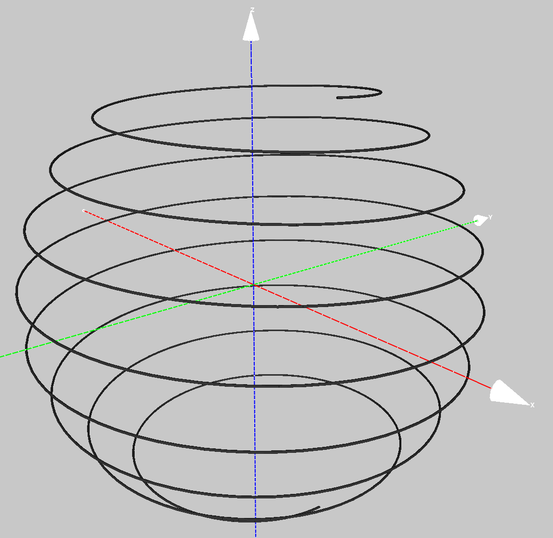 In the following, the total winding angle is 1080 degrees, the radius is 1, and dz set so the spring lies within a unit cube.