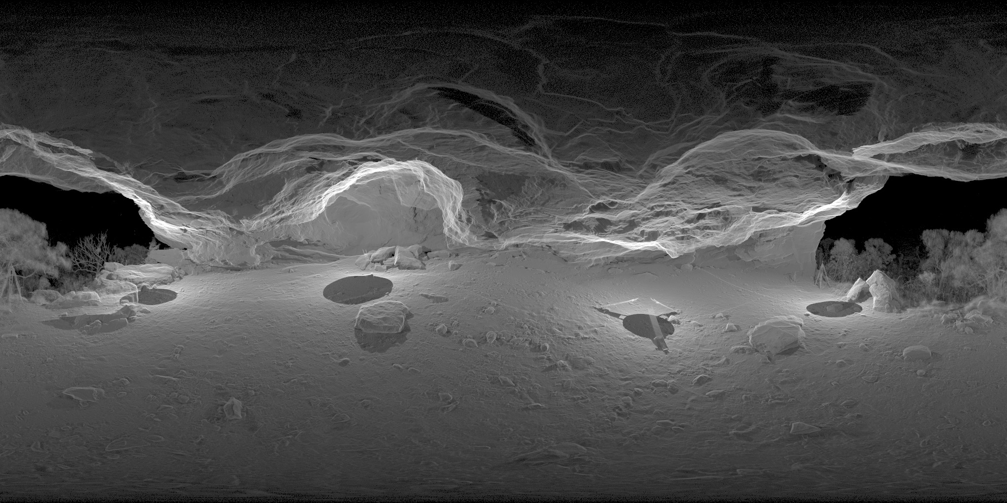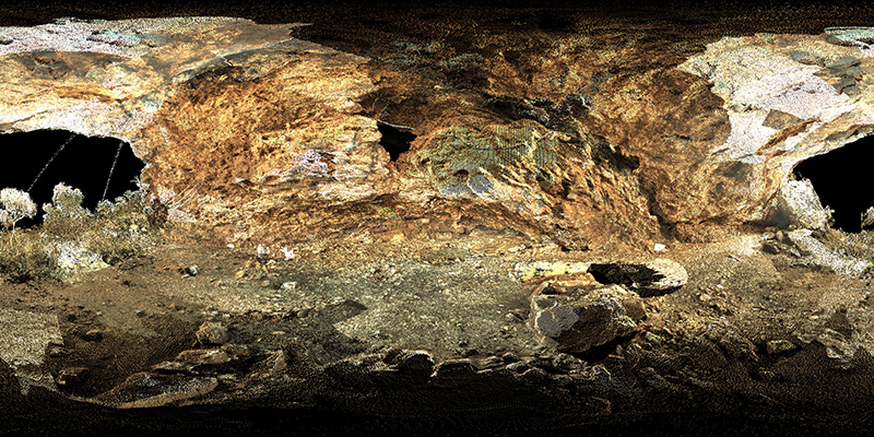The following is some experimentation around representations of laser scan data in a format that might suite virtual environments, and in particular HMD devices. The approach is to render into spherical projections, also known as equirectangular projections. The key characteristic of this projection is that it represents everything that is visible from a single position, that is 360 degrees of longitude and 180 degrees of latitude. In the case of point clouds from a laser scanner, every point is potentially represented in the image. The datasets used here were acquired by Spatial Sciences at Curtin University on behalf of Rio Tinto and Rock Art Archaeology at The University of Western Australia. For more information see A Methodological Case Study of High Resolution Rock Art Recording in the East Pilbara, Western Australia. Example 1Leica ScanStation C10 88 million points + RGB values In the case of the first two examples from the Leica ScanStation C10 the rendering is a depth base one. That is, for each pixel the projection into the spherical image is updated only if it is the closest point to the virtual camera. This is similar to the so called z-buffer rendering for real time APIs such as OpenGL.