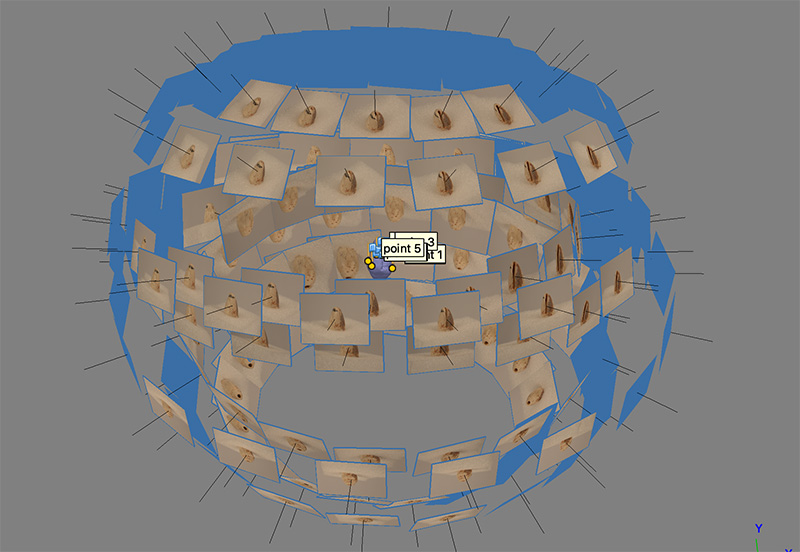 Since a full 3D model is required, the objects were each photographed in two orientations with typically at least 30% overlap. The shape of each object varies and different mounting arrangements were employed for each shape type. Critical of course is for the object not to move during a scan, although small vibration induced movement can be tolerated as it corresponds to a camera shift or tilt. A light box was used to both give higher levels of light so that a small aperture (increased depth of focus) can be achieved. It also removes lighting effects on the objects themselves allowing maximum opportunity to relight in the presentation renderings. ![]() Capture