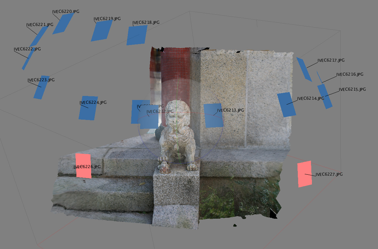 ![]() Cameras (blue rectangles) circle the central rock in approximately 20 degree steps. Example 2: Lion statue, Hong Kong Dragon Gardens