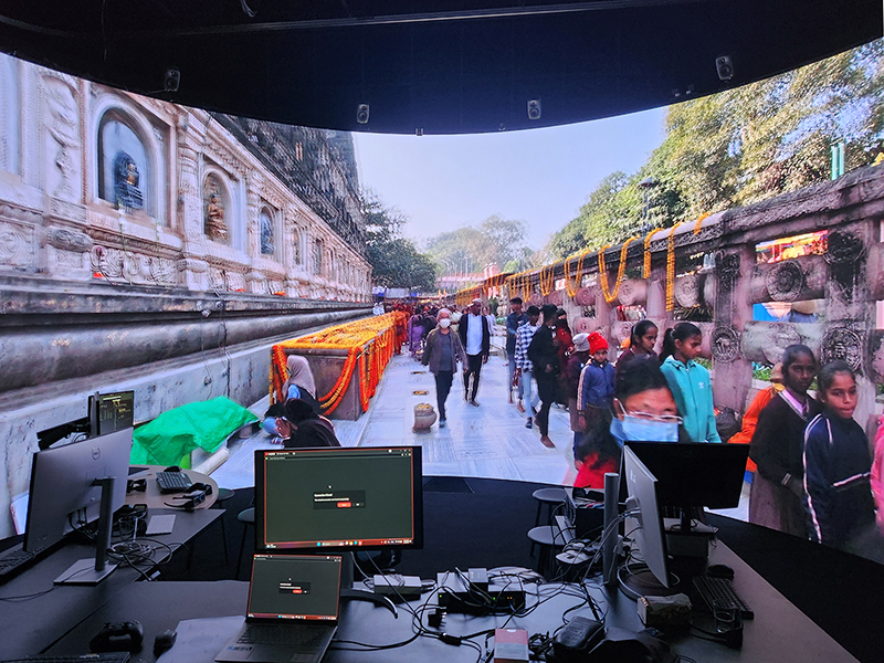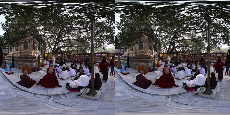 The following presents the two pipelines used for preparing video footage from the "Canon RF 5.2mm f/2.8L Dual Fisheye" for cylindrical and dome displays. The first display considered is a stereoscopic enabled 360 degree LED cylinder, 8m diameter and 4m high. The second display is a projection based truncated dome, 4m in diameter. A key difference between screen based stereoscopy and head mounted displays (so called, VR180) is dealing with the alignment of zero parallax. The examples here are captured in January 2025 from Budh Gaya, Bihar, India. It is known for being where Gautama Buddha attained enlightenment. The footage is a simple walk around the main Mahabodhi temple including under the famous the Bodhi Tree. Preparing frames for the cylinder