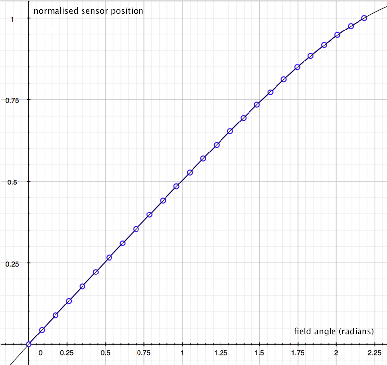 The Entaniya fisheye is quite sharp, and its field angle to sensor position curve is reasonably linear. If necessary, the non-linearity can be corrected.