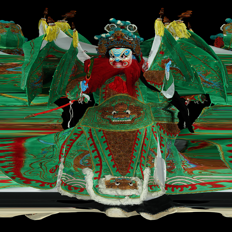 In the examples shown here, a 3D textured model is used to demonstrate the result. However real objects can be used by placing them on a motorised turntable and filming with a video camera followed by the slit scan approach described above for each frame of the video. ![]()